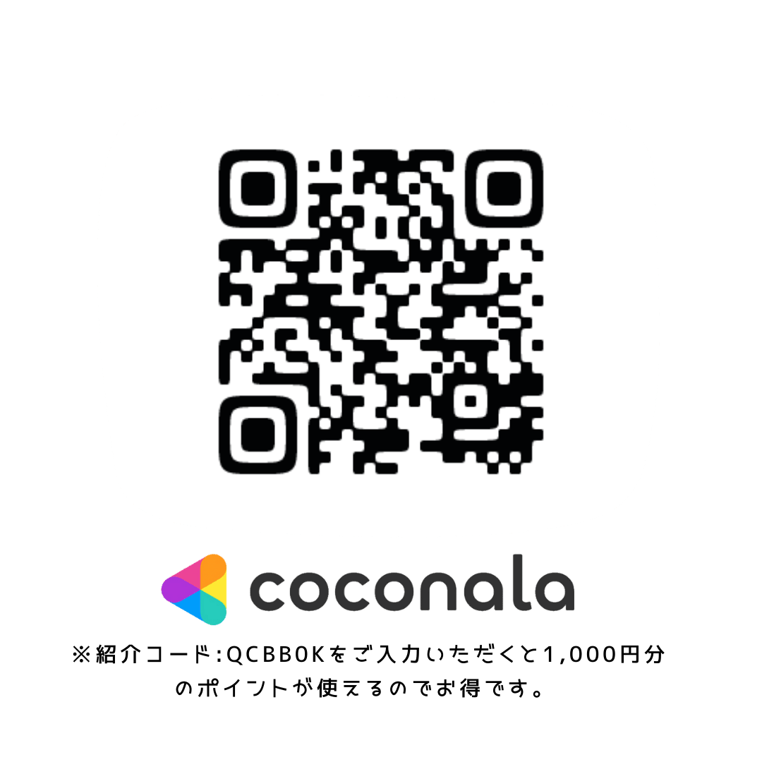 【お得情報】 紹介コード「QCBB0K」を入力すると、1,000円分のポイントが使えます!(※ポイント付与には少し時間がかかります)
